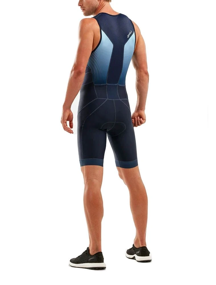 Re-engineered in accordance with RMIT University’s latest research, the 2XU Perform Front Zip Trisuit in Midnight and Fresh Ombre delivers the advanced cooling and ventilation technologies required to conquer the rigors of triathlon.